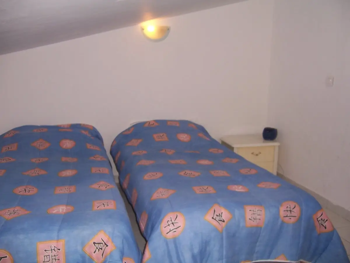 A l’étage : 2 chambres mansardées Salle d’eau avec lavabo, bidet et WC