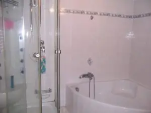 Salle de bains, Sèche-cheveux, Sèche-linge, Fer et table à repasser, Douche, Baignoire, Lavabo, Machine à laver